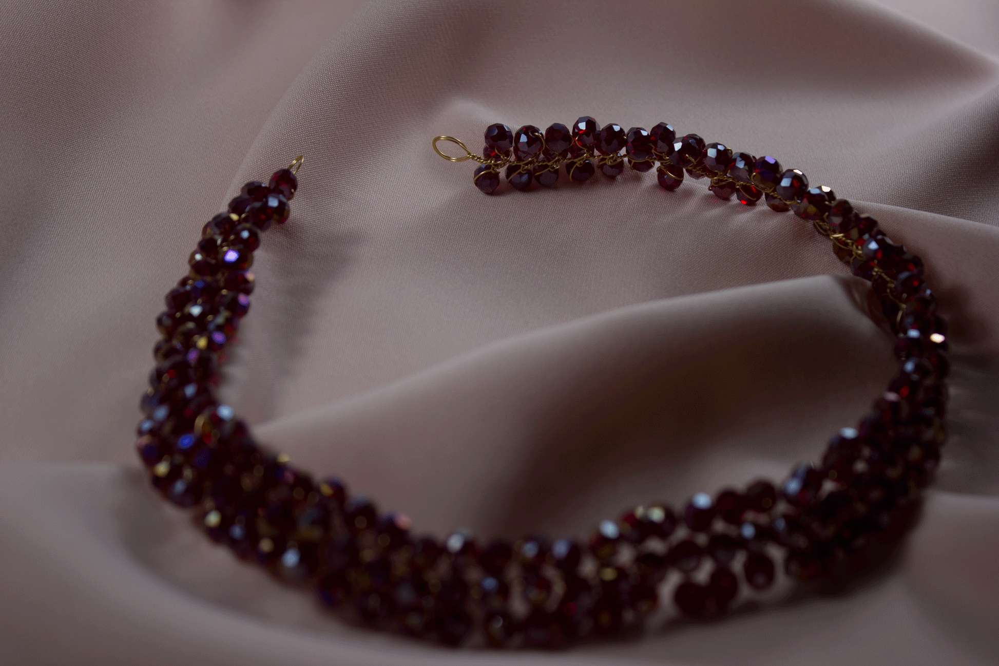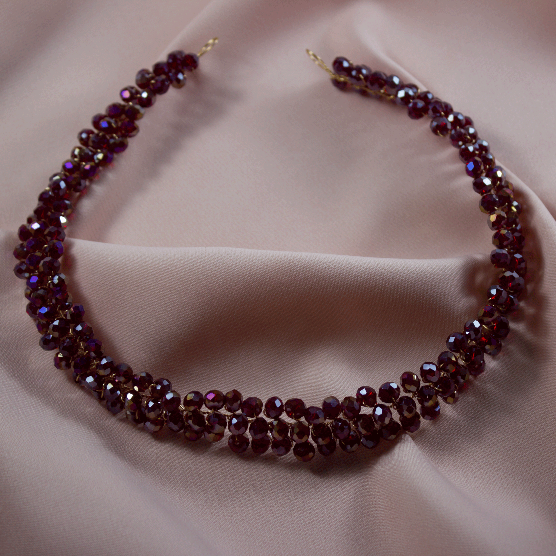 Die tiefe, satte Burgunderfarbe des Haarbands sorgt für einen dezenten und dennoch auffälligen Look, der mühelos zu verschiedenen Hauttönen und Haarfarben passt. Die handgefertigten Perlen wurden sorgfältig ausgewählt, um eine Atmosphäre von Luxus und Schönheit zu schaffen.