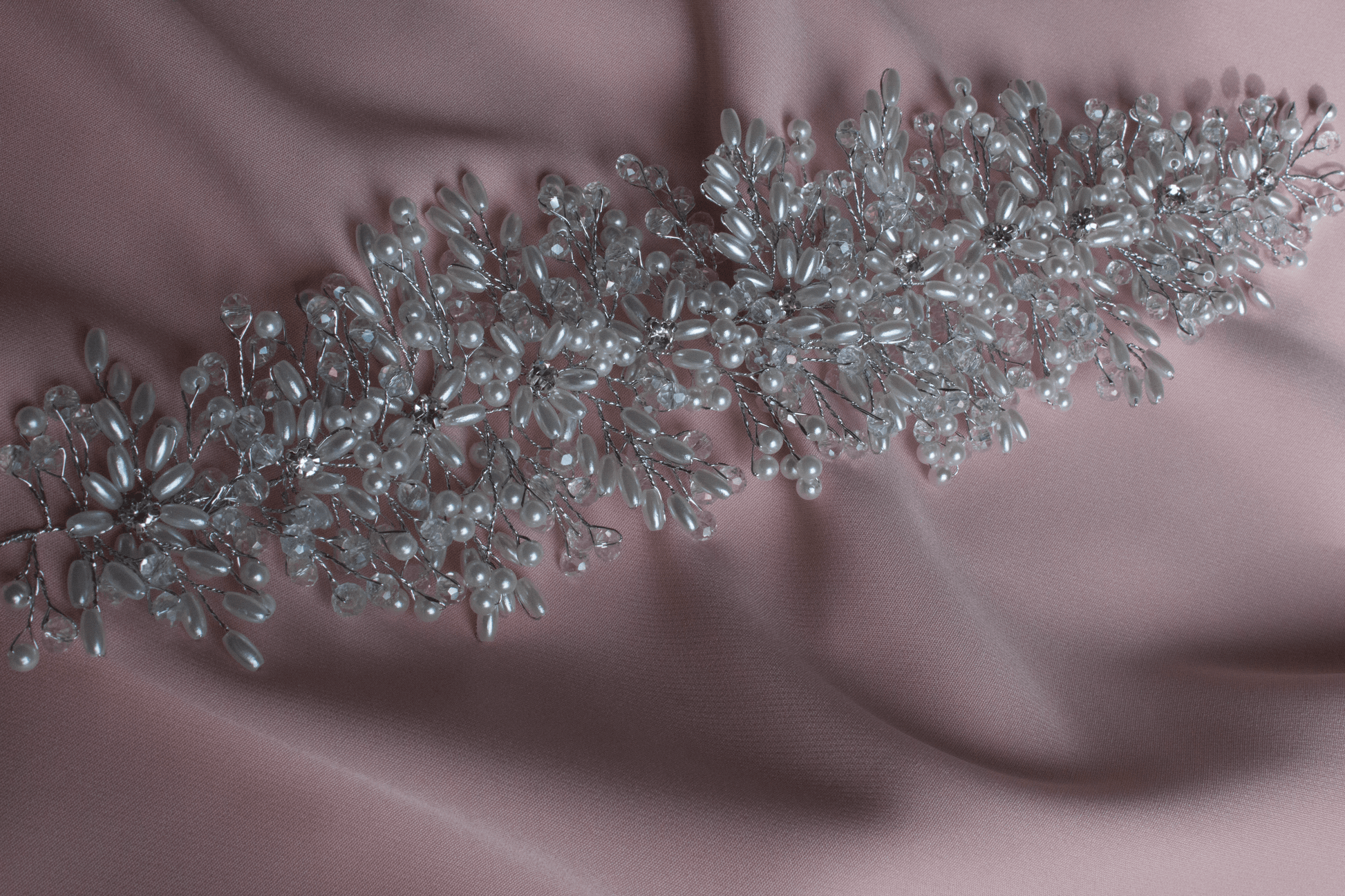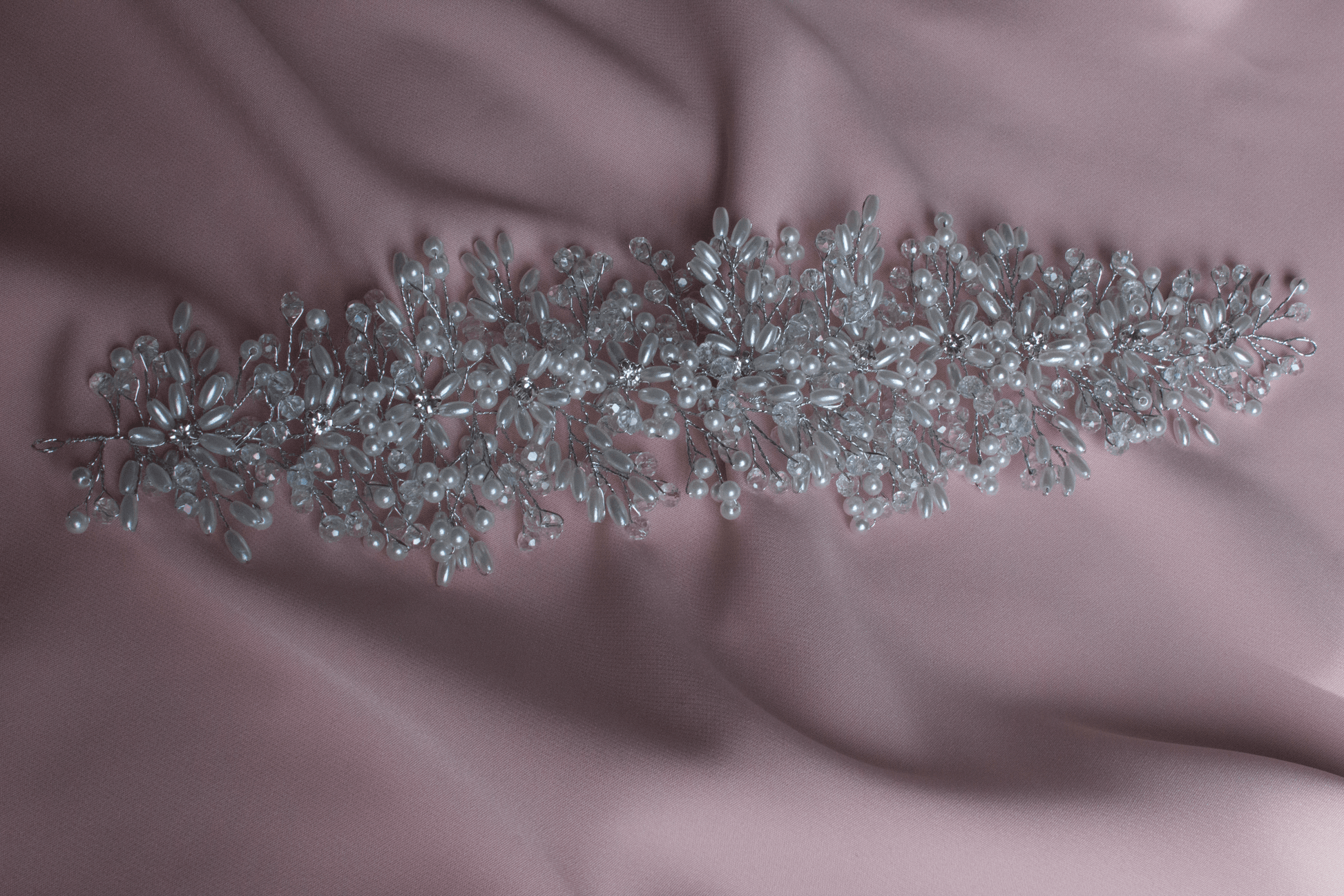 „Daria“ ist ein wunderschöner, reich gefüllter Haarschmuck, verziert mit Perlen und Kristallsteinen.