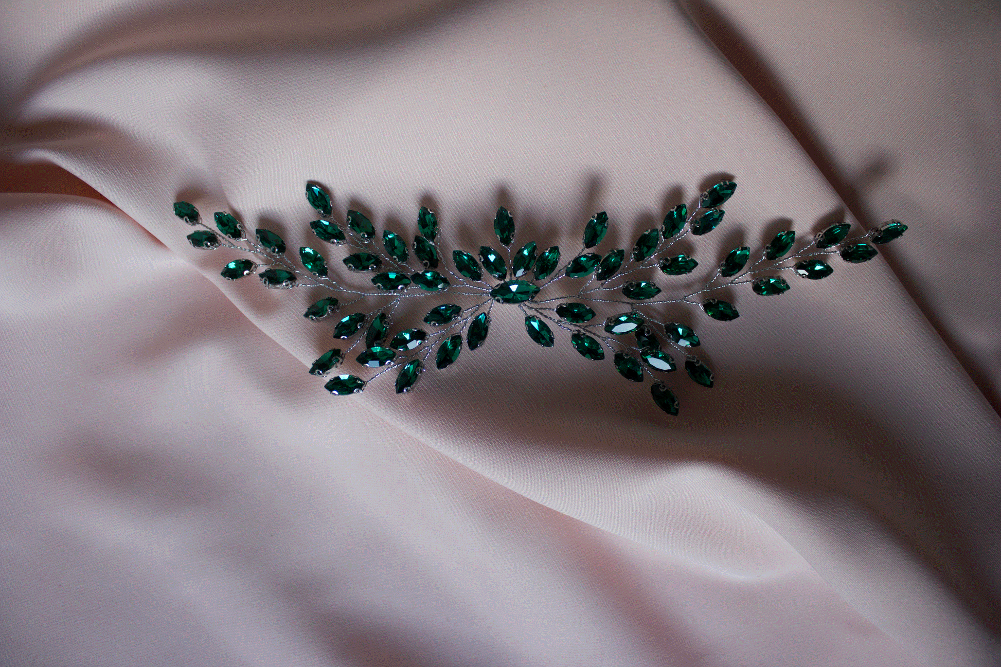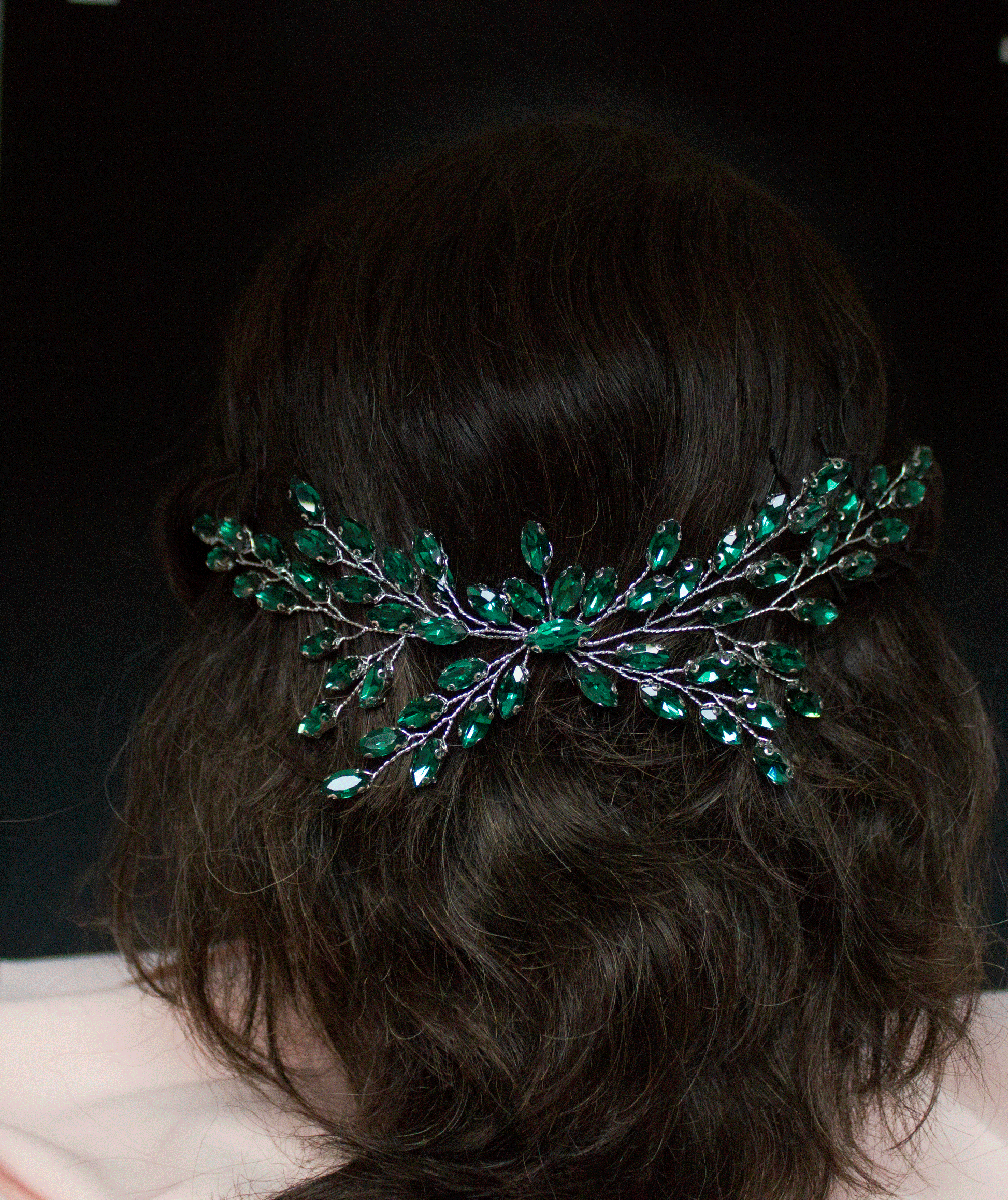 Dieses bezaubernde Haaraccessoire verleiht jedem Anlass einen Hauch von Glamour, egal ob Hochzeit, Gala, Party oder ein anderer besonderer Moment. Der tiefe, satte Grünton der Haarranke fängt das Licht auf eine Weise ein, die Ihr Haar in ein wunderschönes Kunstwerk verwandelt.