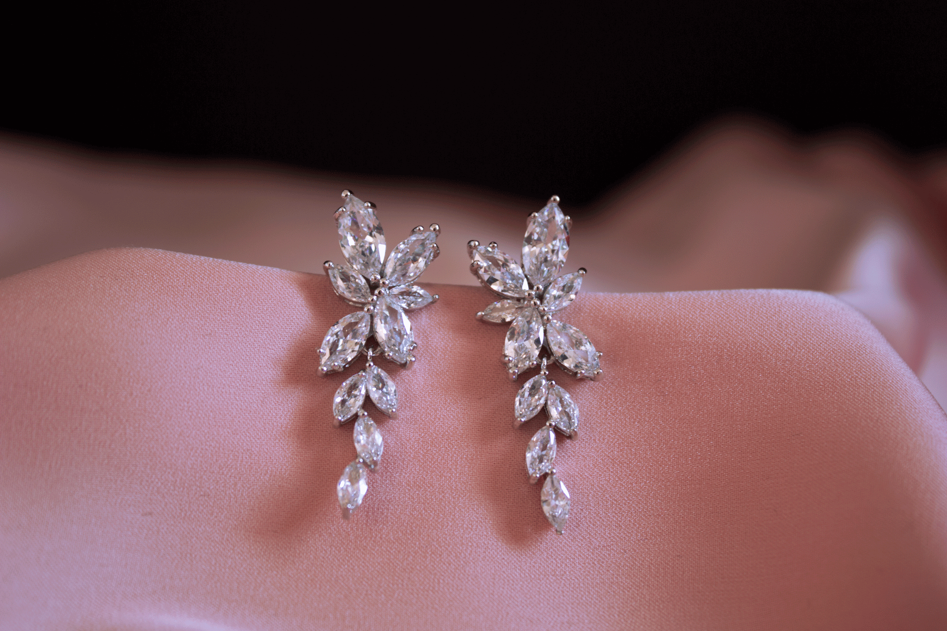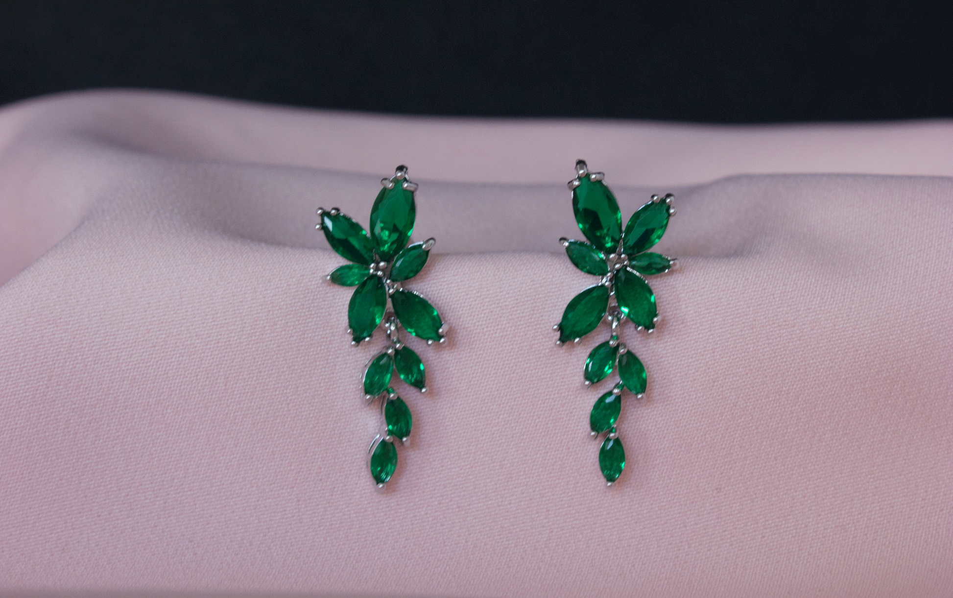 De ''Erina'' oorbellen zijn geliefd bij onze bruidjes in de zilveren kleur, om deze reden hebben deze oorbellen ook uitgebracht in de kleur groen, blauw en fuschia.