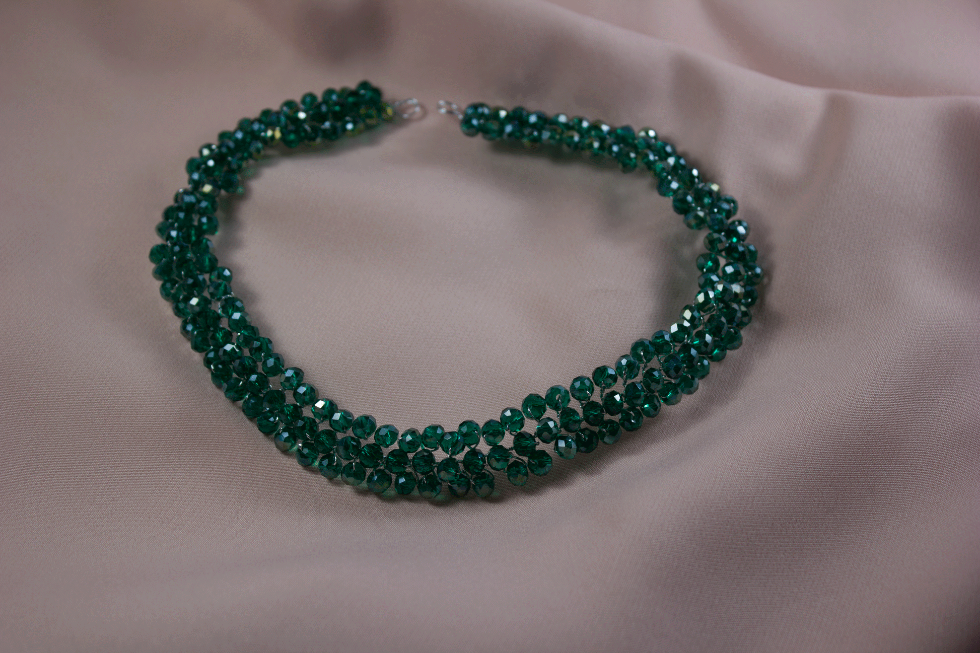 Bezaubernder handgefertigter Haarreif aus grünen Perlen