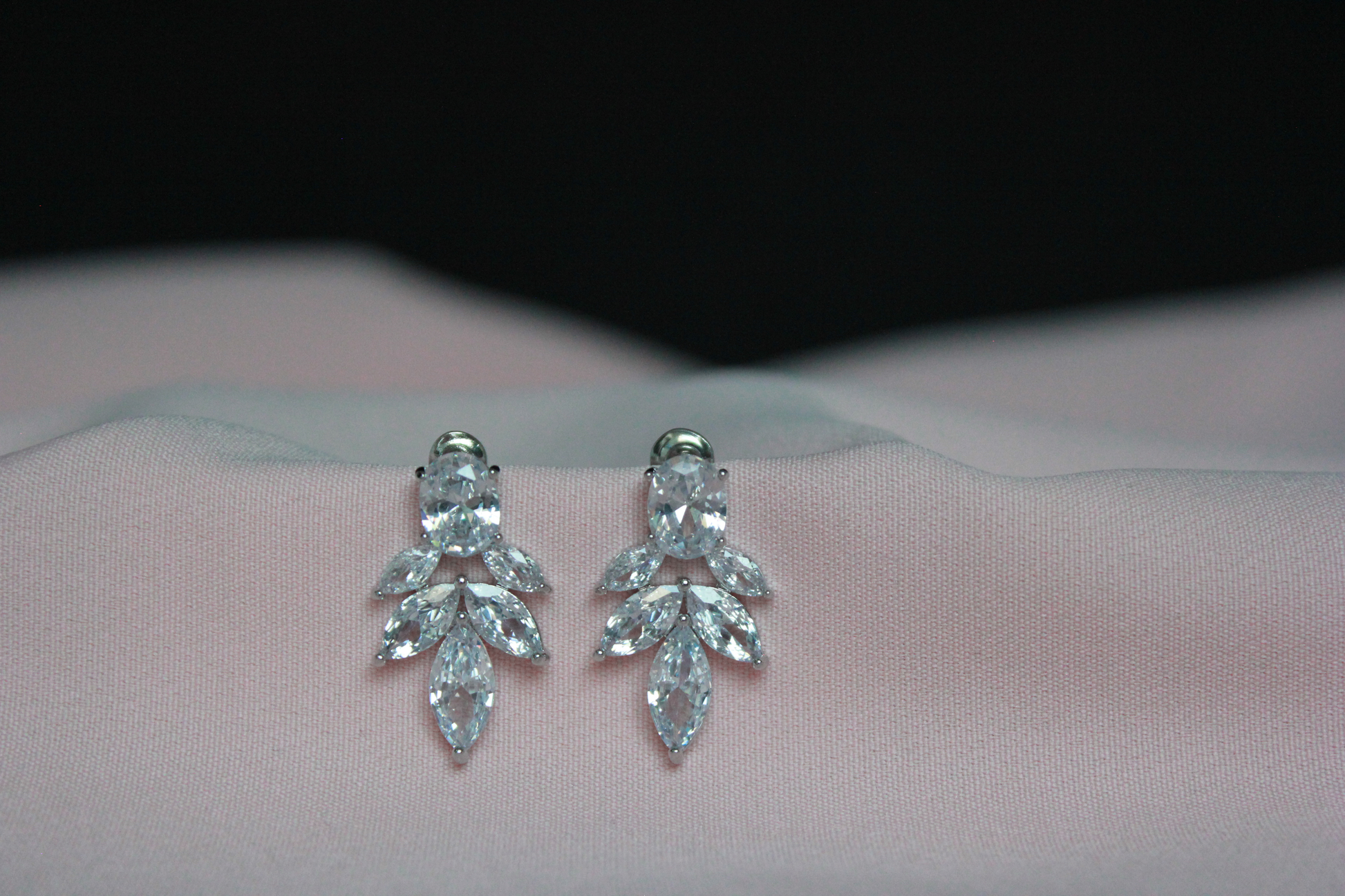 Entdecken Sie unsere wunderschönen Ohrringe mit blattförmigen Zirkonia-Steinen – perfekt für Bräute und jeden anderen Anlass!