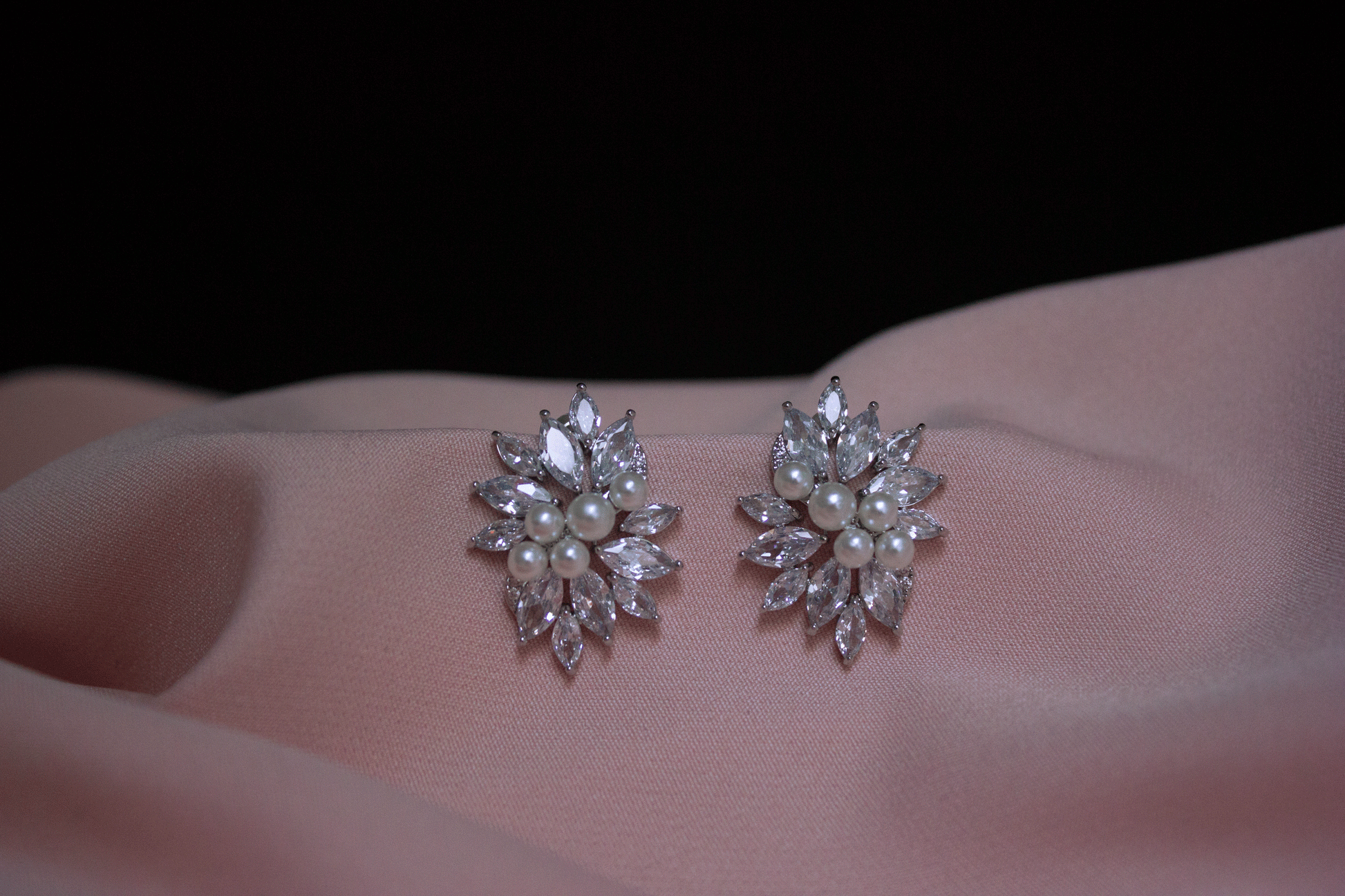 In der Mitte der Ohrringe befindet sich eine atemberaubende weiße Perle. Die Perle strahlt einen zeitlosen Reiz aus und symbolisiert Reinheit und Schönheit, was diese Ohrringe zu einem perfekten Accessoire für Bräute macht, die ihr Hochzeitsoutfit mit einer eleganten und raffinierten Note aufwerten möchten.