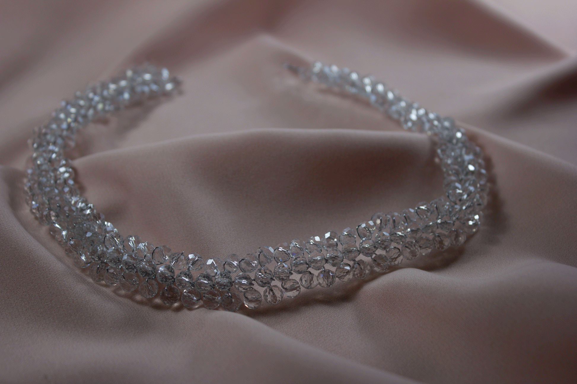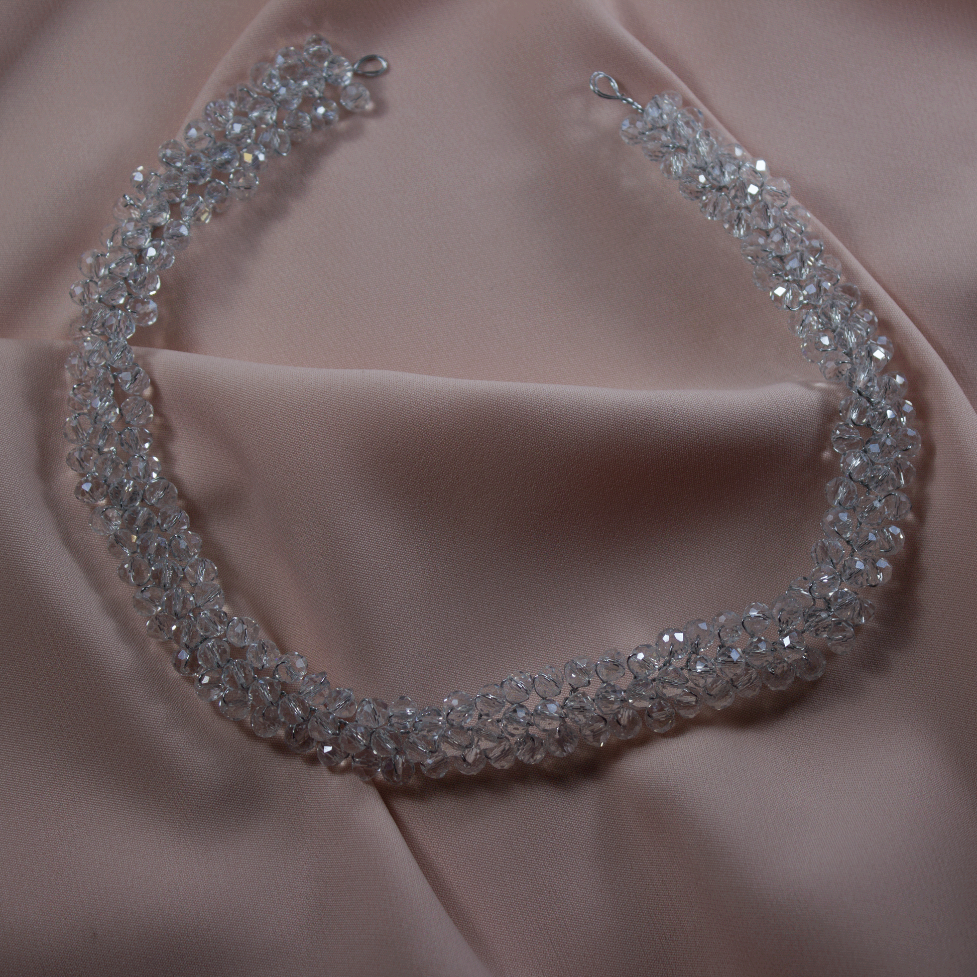Bezaubernder handgefertigter Haarreif aus weißen/glasigen Perlen