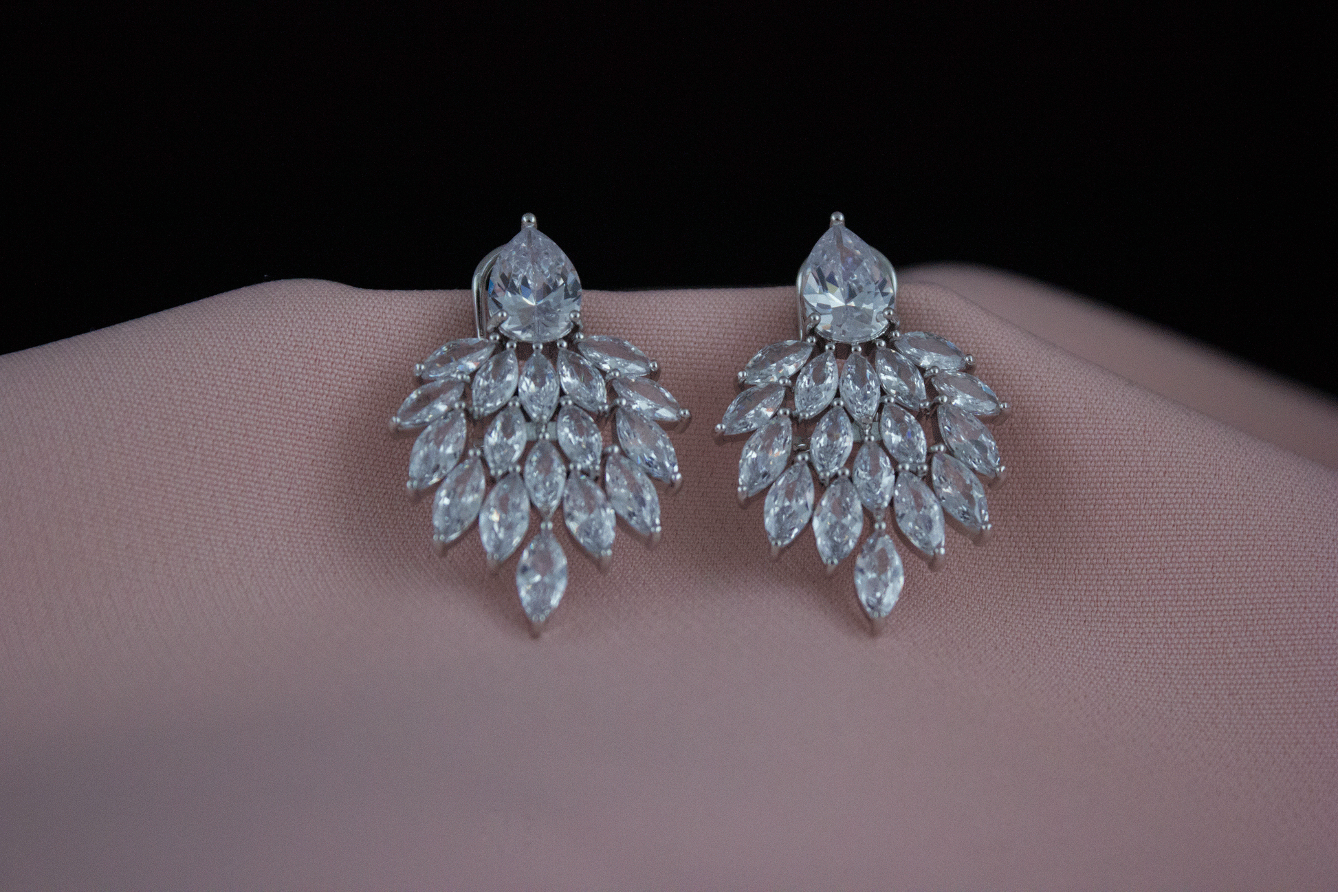 Simone, Ohrringe für die perfekte „Diva“-Braut, die Ohrringe sind komplett mit Zirkoniasteinen besetzt.