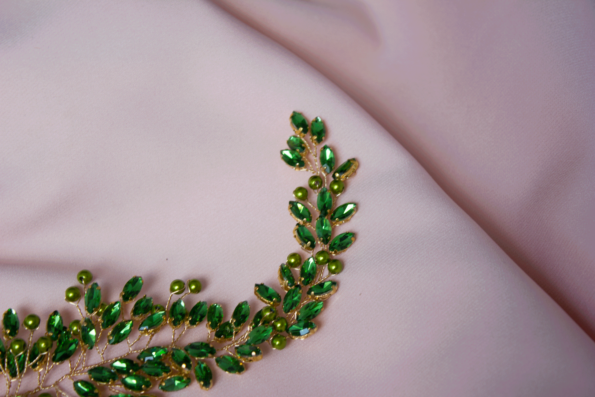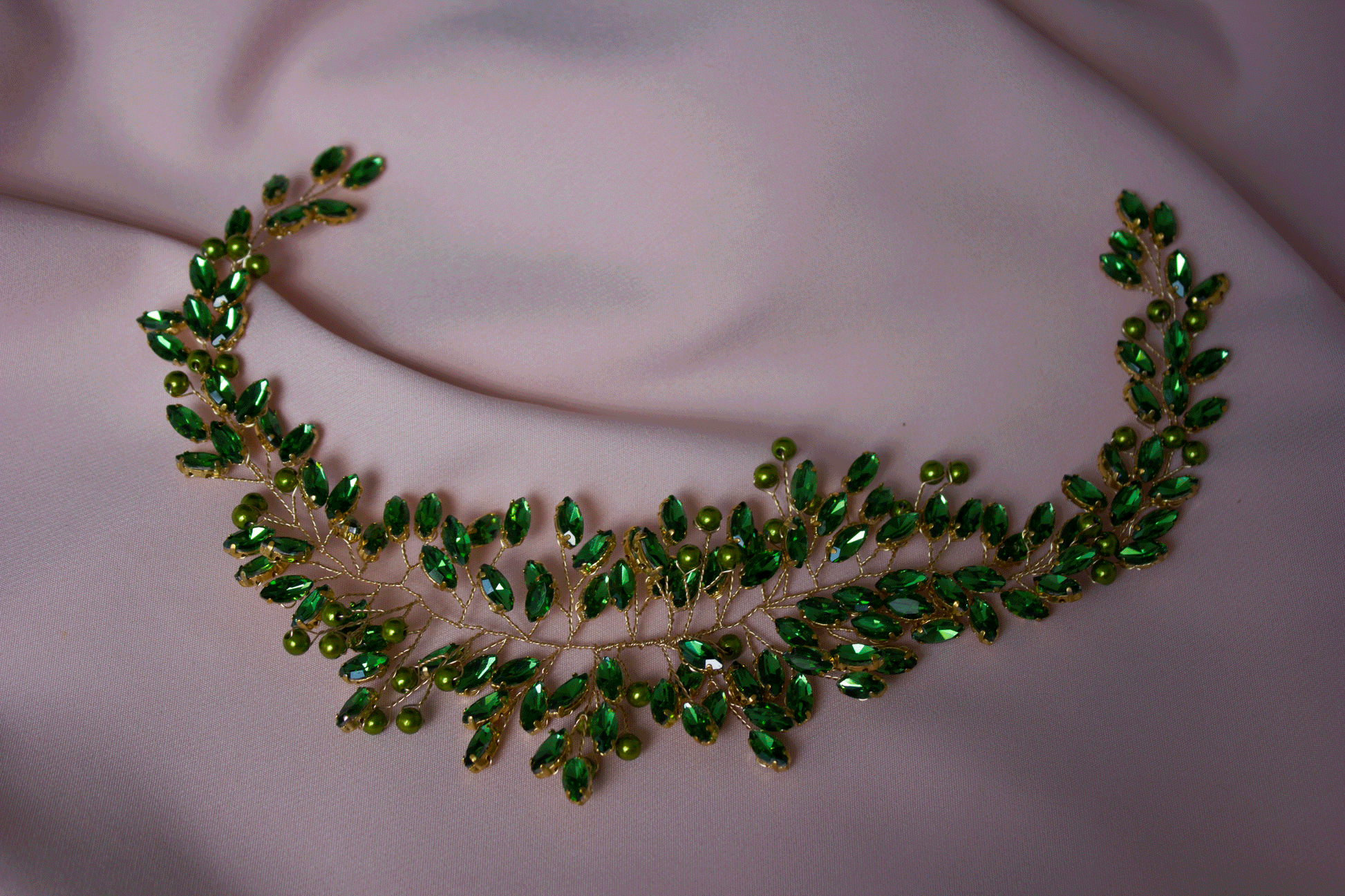 Tahlia ist ein wunderschöner Haarschmuck, der handgefertigt ist. Aufgrund seiner Flexibilität kann dieser Haarschmuck auf viele verschiedene Arten getragen werden. Die Farbe tendiert zu einem Pistaziengrün