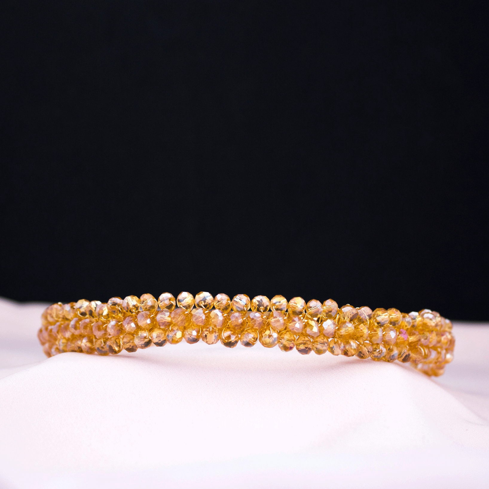 The gold metal and the champagne/gold beads complement each other perfectly, and the diadem radiates timeless elegance. It has been carefully designed to rest comfortably on the head and can be worn with a variety of hairstyles, from updos to loose curls.