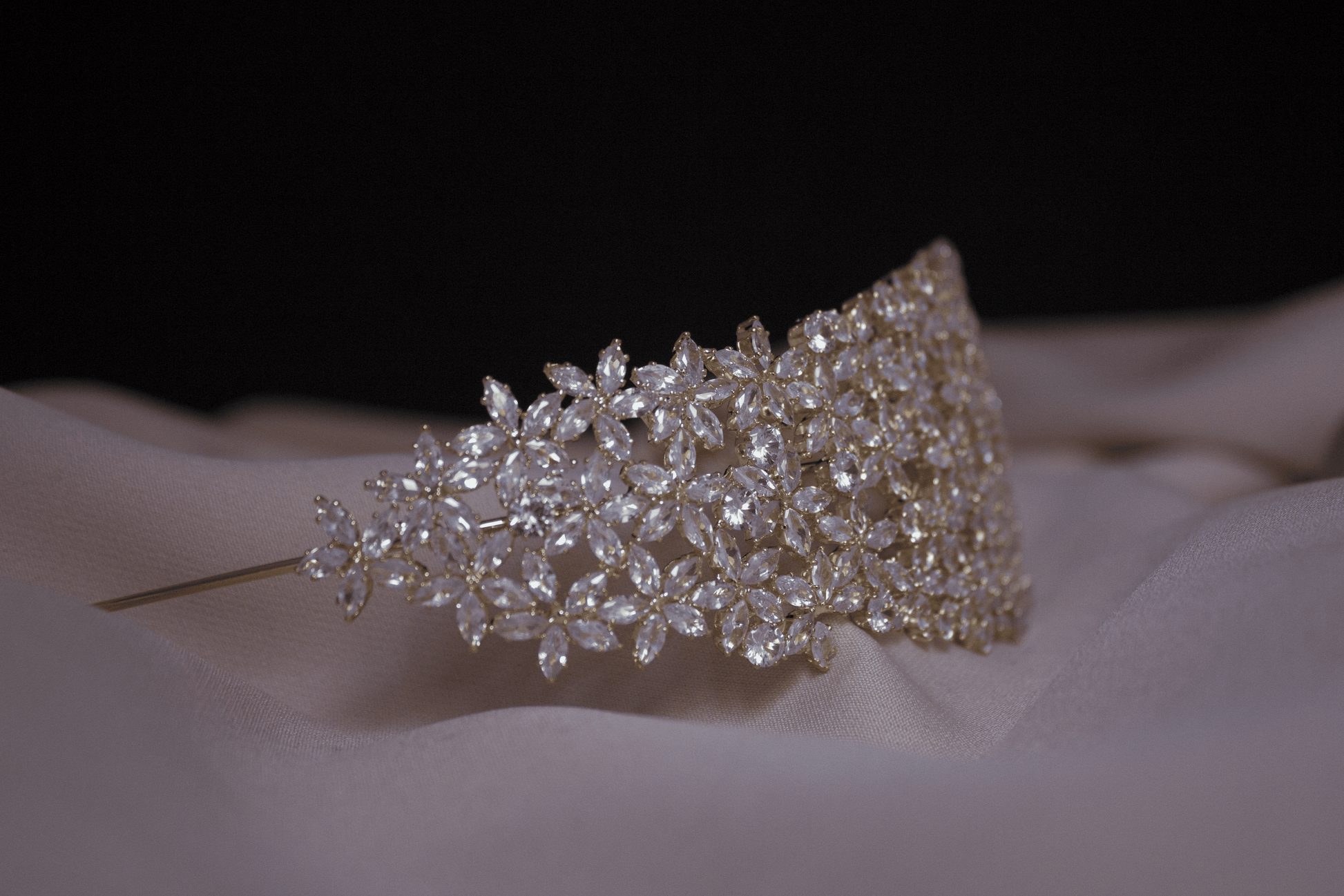 Gemaakt voor bruiden maar ook te gebruiken voor speciale gelegenheden, deze haarband is een statement piece dat je kapsel naar een hoger niveau tilt. Of het nu een avondje uit is of een bruiloft, deze haarband voegt een vleugje luxe toe aan elke gelegenheid.